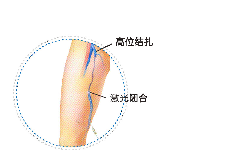 压包扎。对侧支静脉曲张可采用多点穿剌导入激光治疗。