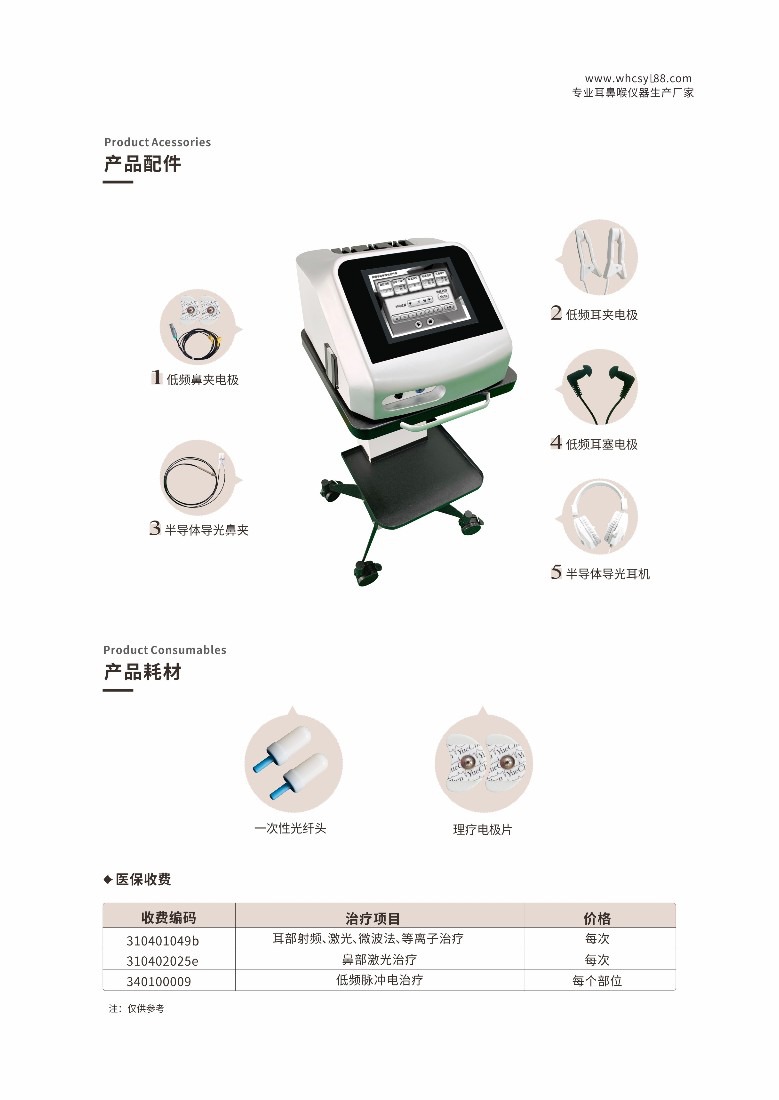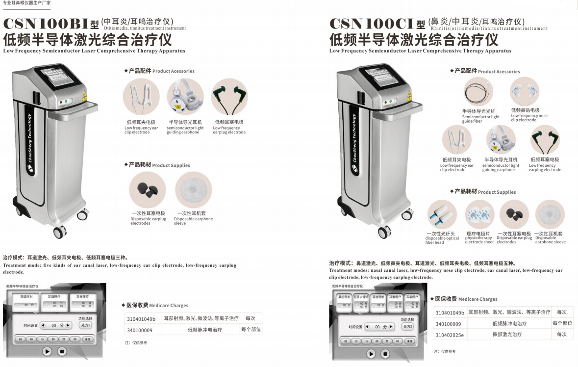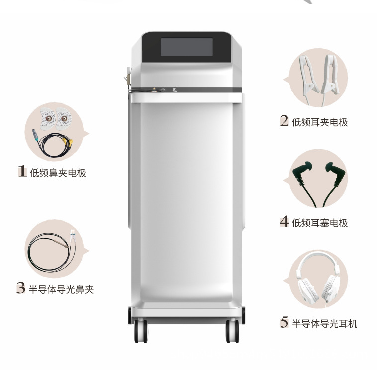 半导体激光治疗仪采用波长为660nm的光波,素有人体黄金波段“生命之光”的美称。主要利用激光产生的光生物刺激效应,通过半导体激光的激光束照射人体病变组织,达到减轻或消除病痛,改善局部血液循环,组织修复,快速消炎等作用。此激光,可深入组织内部作用于机体,使组织良好的吸收光能量,使病痛减轻。超低频数控糅合多种输出波形的电脉冲刺激鼻两侧迎香穴——疏通经络,改善微循环。 临床作用: 1免疫力调节作用 低能量红光激光照射可以激活白细胞,提高其吞噬活性和趋化性,且这种生物效应与照射计量有很大关系,光生物调节效应能提高人体局部组织的免疫力,增强人体鼻组织抗病、抗过敏能力。 2细胞增殖作用 低强度激光照射对造血细胞有调控作用,可加速细胞的分裂增殖。组织修复:促进肉芽组织生长,加快组织功能修复和术后创面愈合。对成纤维细胞的增殖作用在伤发修复起着重要的作用。 3细胞的保护机制 低强度激光照射具有非热效应的生物刺激作用,可以提高机体抗氧化酶的活性和抗氧化剂的含量,增强机体的抗氧化能力,它具有广泛的细胞保护作用。 4弱激光的消炎、消肿、抗菌作用 低强度激光能有效的改善组织血液循环,促进黏膜溃膓愈合,减轻神经组织水肿,减轻炎症反应,增强机体的免疫力,具有广泛的临床应用价值。 5弱激光止疼镇痛作用 低强度的弱激光照射伤口可使伤口生成吗啡,并且促使5-HT合成阻断剂抑制交感神经,吗啡碱和5-HT在激光照射镇痛中有一定的相互依赖关系,临床应用效果明显。 产品卖点: 1.销售模式:投设备卖耗材(一次性激光治疗头罩壳),推广更容易,收益更持久; 2、半导体激光鼻科治疗仪全国统一收费标准,收费编码:310402025,部分省市激光治疗已纳入国家医保