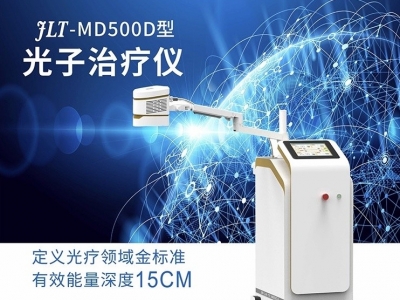 产品简介: 医用医疗科学技术研发生产,品质好,金莱特医疗JLT-MD500C/D型五大特点如下: 1.15cm渗透性的穿透深度:产品采用zui新工艺多芯组集成,光源集中,反光杯选择最新工艺打造以减少光源传输过程中的损失,穿透深度可达到皮下组织15cm,对人体组织深层理疗。 2.医用“纯净”光源:产品采用高功率第5代LED窄谱光源,发光效率大,优质的半峰宽特性±5nm,与普通LED芯片相比,光源更加“纯净”,经老化测试,产品光源寿命为100000小时,优质可靠。 3.强劲的输出功率:芯片表面功率业界领先,产品在治疗范围上具有更多的选择性。 4.智能治疗反馈系统:通过监控患者体表温度,反馈调节治疗方案,达到更好预期治疗效果。 5.更人性化的安全保障:配置一体化回流焊接工艺,搭配符合国际标准的电磁干扰的抗辐射芯片系统SPIC,控制电磁辐射对医务人员可能带来的影响。 5.可调节的治疗角度及照射面积:大面积均匀性照射,展开灯罩后,适用于大面积患处(如背、腿等)照射。小面积多角度照射,聚合灯罩,通过不同角度实现全方位照射,适用于需要非平面、多角度照射,可用于面部轮廓,肘部四周等。