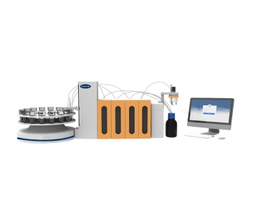 产品概述 1、参考标准:GB/T 5461-2016《食用盐》、GB/T 13025.7-2012《制盐工业通用试验方法碘的测定》 2、混合同步进液系统:同时5通道进样,滴定剂、添加剂或辅助试剂任意组合使复杂的进液添加需求彻底摆脱手工操作。 3、内置式滴定管:内置式的滴定管,滴定管内置在仪器中,外部可通过视窗观察滴定管情况,使溶液运行过程中彻底与人员分离,避免溢出对操作员造成损伤。 4、容量滴定管可选:5ML/10ML/25ML. 5、云服务功能(选配):仪器带有网络接口,通过互联网可以将数据存储在云端,实验应用模式大数据应用,摆脱仪器单机运行的时代。 6、滴定平台多元化:通过自动进样器可全自动进行多任务操作,不再为多任务操作烦恼,全过程无需人员监控,提高工作效率。