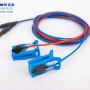 【主要结构组成】 由仪器插头、信号线(屏蔽与非屏蔽)、集线盒及金电极属件(金属插针、盘、夹、扣子)组成。 【产品性能】 1.从传感器到传导线端子之间的阻抗在 0.5--2.5Ω(对应1.5 m,导线长度增加时,对应阻值增加应不大于1Ω/m)。 2.在电极对上施加峰值为100μA的10Hz正弦交流电流的情况下,电极对交流阻抗不超过5KΩ 【适用范围】 与多种脑电图仪、脑电睡眠监护仪、脑电生理分析仪、肌电分析系统配合使用,用于传输人体生物电信号。 【禁忌症】 皮肤有外伤或进行过外科手术并未愈合者禁止使用该产品。 【注意事项、警示】 使用前根据需要选择合适型号的导联线。 【使用说明】 1.清洁受试者待采集处皮肤; 2.用棉签挑取适量导电膏涂抹在电极凹面,刚好有足够导电膏与头皮接触, 导电膏不宜用多,否则会产生伪差,用胶带将电极固定在待采集信号处;(此步骤仅适用于型号GC型、SC型、SCC型、SSC型、ABS型、EC1-4型) 3.将导联线与脑电图仪、脑电睡眠监测仪,脑电生理分析仪、肌电分析系统中的相关仪器连接; 4.将上述仪器连接在输出设备上,如打印机等,并打开电源; 5.开始检测,记录并打印检测结果; 6.记录完成后取下导联线,协助病人清洁皮肤; 7.用清水清洗、擦干备用。 【产品运输】 产品在运输时应防止重压、雨水淋湿、高温受热。 【产品维护和保养方法】 产品定期用清水清洗,通风处阴干,避免挤压。 【储存方法】 储存在温度-10℃~+40℃,相对湿度≤80%,无腐蚀性气体、通风良好的环境内。