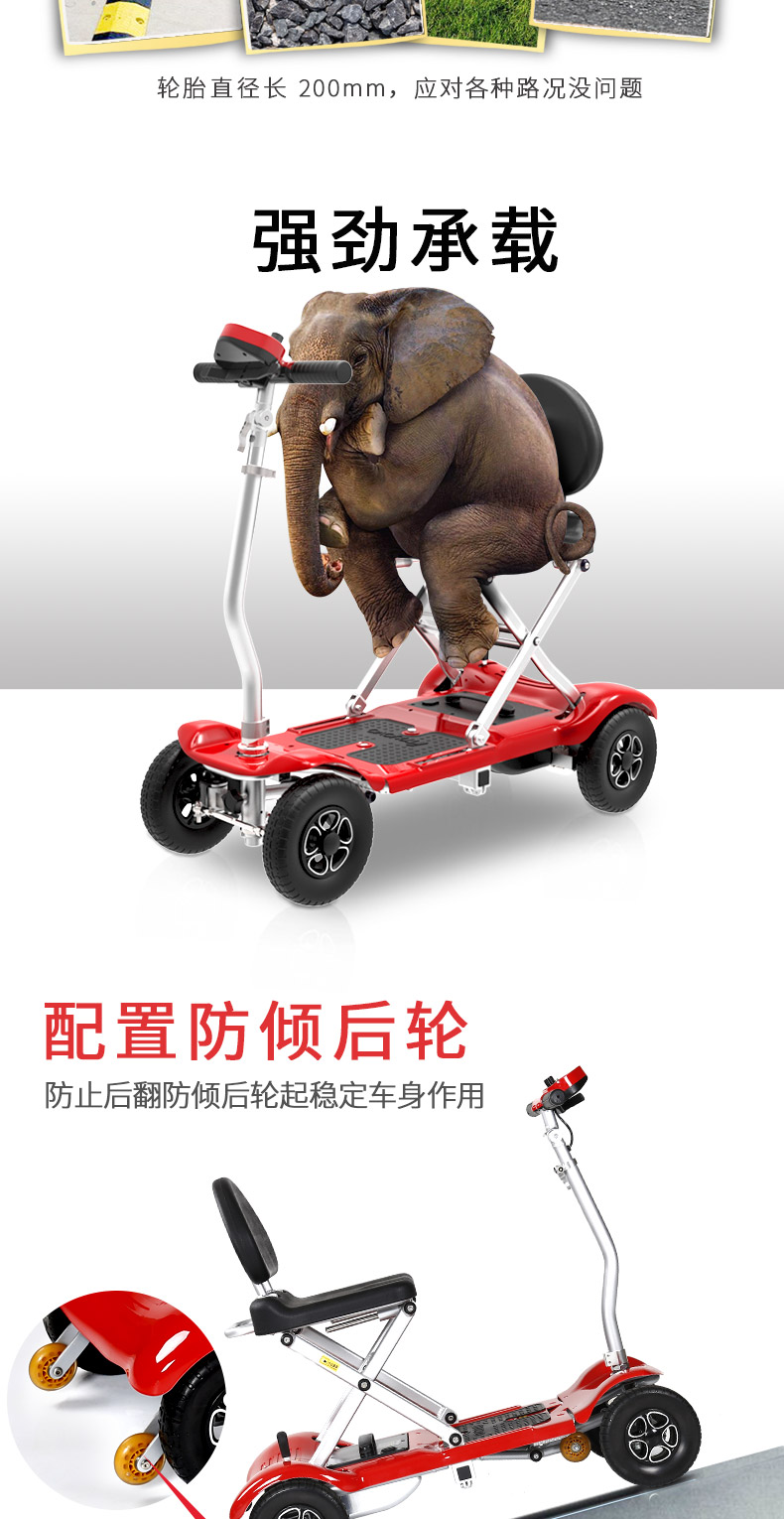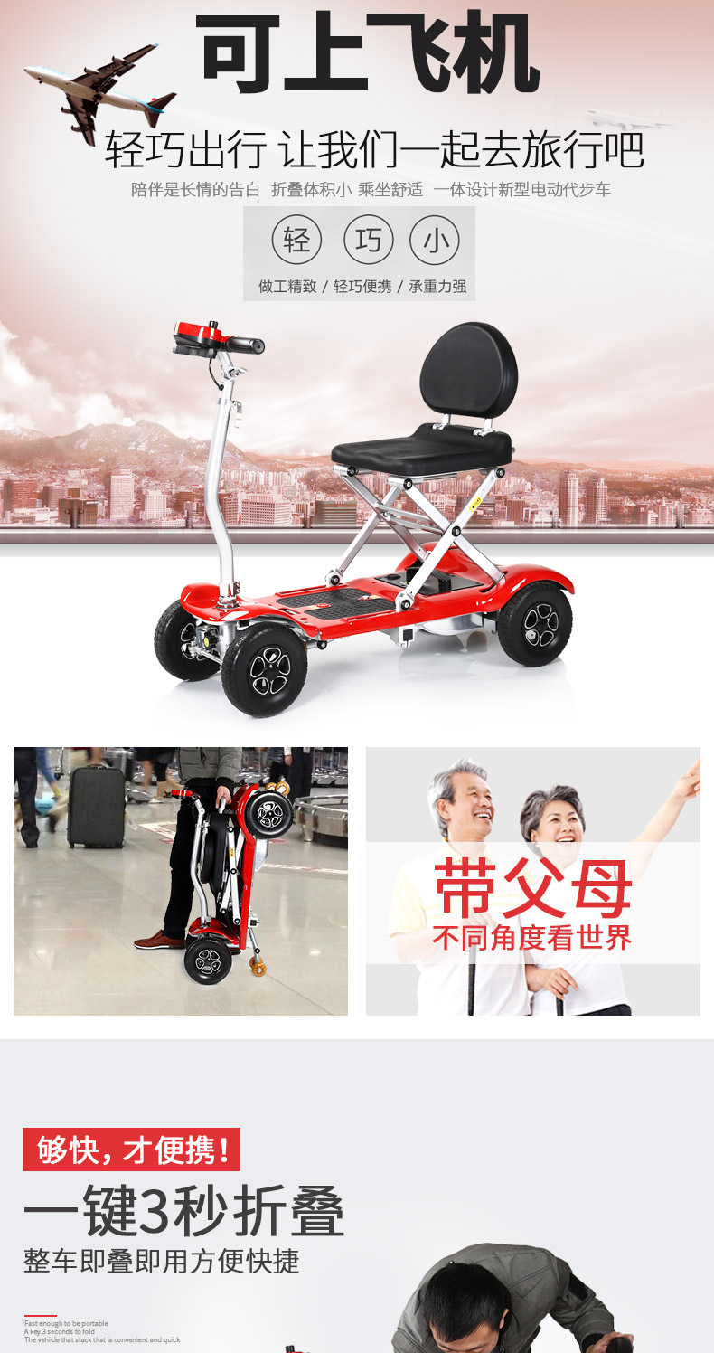 | 产品优势: | 英洛华轻便型净重19.8kg可上飞机电动代步车可进电梯。 |
