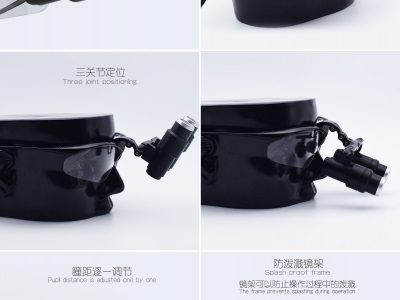 物像高倍放大 瞳距逐一调节 工作距离定值 术后上翻,观察比对 可配接头罩、头灯 卖点: 是精细要求高、辨别难度大的手术的理想选择 改装成头罩式佩戴工作.可以解决镜头重量重的不适感 如果再配装一款高亮度头灯.手术更轻松,观察更精细 工作距离可订制.满足性强  |