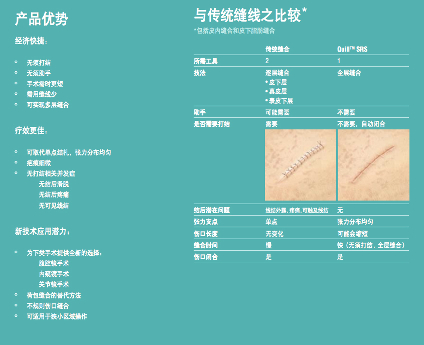 产品名称:快翎Quill可吸收性外科缝合线,免打结倒刺线