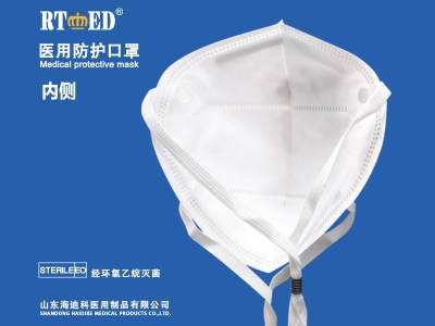 | 产品优势: | 海迪科医用防护口罩由面层、滤层、里层、鼻夹、口罩带等组成,面层、里层材料为聚丙烯纺粘无纺布,滤层材料为两层聚丙烯熔喷无纺布和PP棉,口罩带材料为涤纶线编织而成、鼻夹为可弯折可定型的金属制成。经环氧乙烷灭菌,产品无菌供应 |