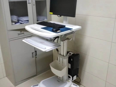 移动查房工作站,采用流线型设计,一体化集成,模块化组合的设计架构;由移动载体、计算机、UPS电源三部分组成,整车美观大方。