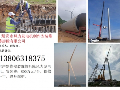 | 产品说明: | 延安市风力发电机制作安装维修拆除有限公司,联系人:程经理,电话微信:13806318375.生产制作安装维修拆除风力发电机。安装费:800万元/台,保修一年,终身维护。分散式风电一期项目成功并网发电,2台容量6.7兆瓦的风力发电机单日最高发电量突破23万度,绿电主要用于矿石装卸、原油输送等作业,当风力发电机满发而自用率低时,将通过余电上网的方式,把多余电量并入国家电网,提高清洁能源的整体利用率,为建设“低碳,港口”、推动能源结构优化注入源源不断新动能。 悠然转动的风机叶片,与蓝天碧海相映,带来源源不断绿电的同时,还实现了经济、环境双重效益。“额定工况下,风力发电机每转一圈,约发电10度,可供一辆新能源汽车连续行驶60公里。”“2台风力发电机每年预计发电量可达3304万度,相当于减少二氧化碳排放2.35万吨。” ,,绿色低碳转型的发展脉搏正随着劲风、伴着阳光勃勃跃动:高达百米的风电机组,傲然矗立码头和堆场之间,蔚为壮观;,区办公楼顶、库场顶棚上,光伏板连接成片、向阳而展;船舶岸电设施在码头海岸线上星罗棋布,电动集卡、新能源机械竞相驰骋在各作业现场。 ,港口是物流纽带,也是国家“双碳”战略落地的前沿阵地。当前,,,正全力推动能源管理数智化转型,推进,区分布式光伏、分散式风电项目应建尽建,应投尽投;建成投用山东,港口首个多能融合智慧能源管控平台、虚拟电厂智慧管控平台等,构建起与新能源发展相协同的数智化平台。 在,,岚山,区最南端,分散式风电一期(续建)项目正在冲刺建设,现场挂图作战、倒排工期,人员以等不起、慢不得、坐不住的紧迫感和责任感,加快推进各项施工进度。“该项目计划今年年底完成安装,届时总装机规模将达到33.5兆瓦。”山东,港口,,动力公司风电项目组成员刘政表示,“这个项目对我们来说很有挑战,我和团队正在千方百计加快推进项目建设,我们有信心让项目尽快落地见效。”风力发电机组的搭建过程就像拼巨型积木。我们玩积木时有拼装说明书,而搭建风力发电机组时也有《风力发电机组安装作业指导书》,有百余页! 其中关键步骤有4步,分别是:塔筒吊装、机舱吊装、风轮吊装以及电气部分安装。当这4个步骤都完成后,一台百米高的风力发电机组就立起来了。 拼装一个巨型“大风车”需要多长时间? 要拼装好风力发电机组这个巨型积木可不是件易事。需要30余人通力配合,花费6天左右的时间才能完成一台风力发电机组的安装工作。而这还是在理想状态下,不包括大风、雨雪等一些恶劣天气因素。 巨大的叶片想要安装到百米高空,主要分为两步。第一步是地面安装部分。首先要把三个叶片组装到轮毂上。这一步非常的精细,需要提前在叶片和轮毂上做好零刻度标记,叶片和轮毂对接时,保证两部件的零刻度对齐。第二步是空中对接部分。也就是把地面拼装好的叶片和轮毂整体用大吊车吊到百米高空中,让它与机舱牢牢对接固。现在常用的几款陆上机型,功率等级涵盖5.XMW至10.XMW。以6.25MW机型为例,风轮每分钟能转8圈左右,每转一圈能发12度电。建设一个总装机容量10万kW,安装16台6.25MW风力发电机组的风电场,其并网发电后,每年可发电2.8亿度。据测算,这些绿电每年可节约标准煤11.2万吨,减少二氧化碳排放26.4万吨,这不仅能够创造巨大的经济价值,对构建新型能源体系,推动经济社会发展绿色转型,助力“双碳”目标实现具有积极意义。 — —