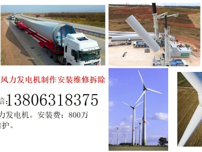 | 产品说明: | 金昌市风力发电机制作安装维修拆除有限公司,联系人:程经理,电话微信:13806318375.生产制作安装维修拆除风力发电机。安装费:800万元/台,保修一年,终身维护。风力发电机安装是通过专业吊装设备将塔筒、机舱、叶片等大型部件精准定位并组装的复杂过程,涉及选址评估、基础施工、部件吊装、电气系统集成及并网调试等核心步骤,需严格遵循安全规范与技术标准。 安装核心流程与技术要点 风力发电机安装需按顺序执行以下步骤,确保结构稳定与运行安全: 00001. 选址与基础施工: · 选址需评估风能资源(风速3-20m/s)、地质条件及环境影响,通过土壤勘测和承载力测试确定场地。 · 基础施工包括挖掘基坑、浇筑混凝土平台,并预埋地脚螺栓;基础需养护至设计强度(通常28天以上),接地电阻需符合规范。23 00002. 部件吊装与组装: · 塔筒安装:分段吊装(通常3-4节),使用大型起重机(如4000吨履带吊)和辅助吊车(如110吨汽车吊),确保垂直度误差小于1‰,每段就位后立即用高强度螺栓紧固并连接接地网。 · 机舱安装:吊装前检查吊点,机舱就位时需人工牵引风绳避免碰撞,螺栓紧固力矩需达设计要求;高空作业需设置防坠装置。23 · 叶片与轮毂组装:地面预装叶片与轮毂,标记零刻度对齐;整体吊装时用多根导向绳控制摆动,叶片桨距角需锁定顺桨位置;空中对接后紧固螺栓。 00003. 电气系统与并网调试: · 铺设输电线路,安装控制系统(风速仪、变桨机构),完成电缆绝缘与接线。 · 并网前进行功率测试与转速调节,验证电网兼容性后投入运行。 技术创新与安全规范 现代安装技术持续突破,同时严格管控风险: 00001. 技术创新: · 大容量机组(如26兆瓦级)采用“桩基加固法”解决滩涂地基承载力问题,使用4000吨级起重机实现毫米级高空对接。 · 预变桨控制技术(如叶片提前顺桨5.9°)降低湍流载荷,非线性变桨算法提升风速响应精度。 00002. 安全规范: · 吊装时风速超12m/s、大雾或雷雨天气禁止作业;作业半径内设警戒线,非导电缆绳需保持与带电体安全距离。 · 塔筒组装前需安装扰流条(如爱辉项目),打乱风速减少共振;机舱就位后立即封闭顶部。 典型项目案例与效益 近期项目体现安装效率与环保价值: · 山东东营26兆瓦机组:全球最大海上风机,轮毂中心高153米,叶轮直径200米,单机年发电1亿度,供5.5万户用电。修文高仓风电项目:14台6.25MW机组,轮毂高113米,采用900吨履带吊与110吨汽车吊配合,投产后年减碳12万吨。 · 桂阳欧阳海风电场:10台5MW机组,轮毂高115米,年发电1.138亿千瓦时,助力山区能源转型。