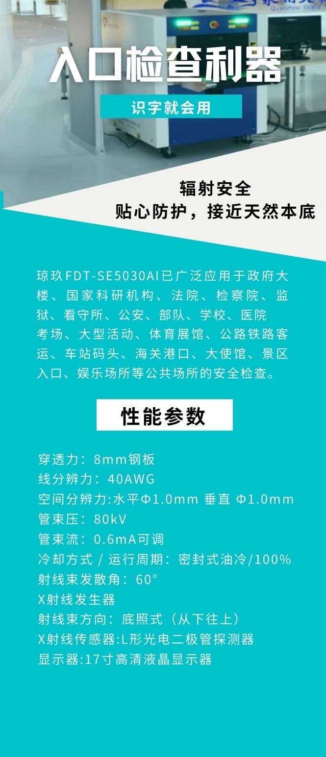 | 产品说明: | FDT-SE5030C型(部012目录 入围型号)X射线安全检查设备广泛应用于:大楼、科研机构、学校考场、大型活动、体育展馆、公路铁路客运、车站码头、海关港口、旅游景点、场所等公共场所的安全检查。