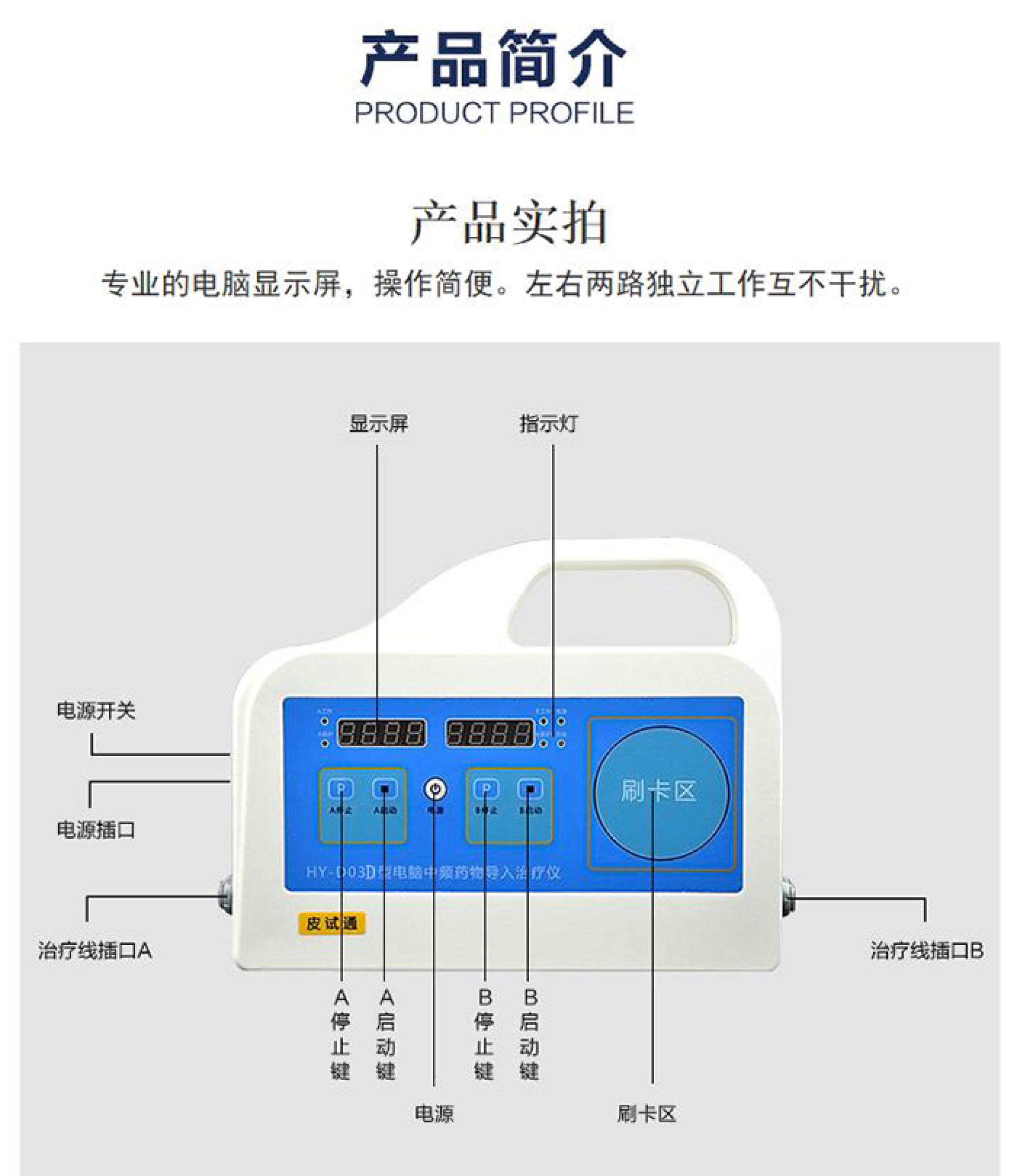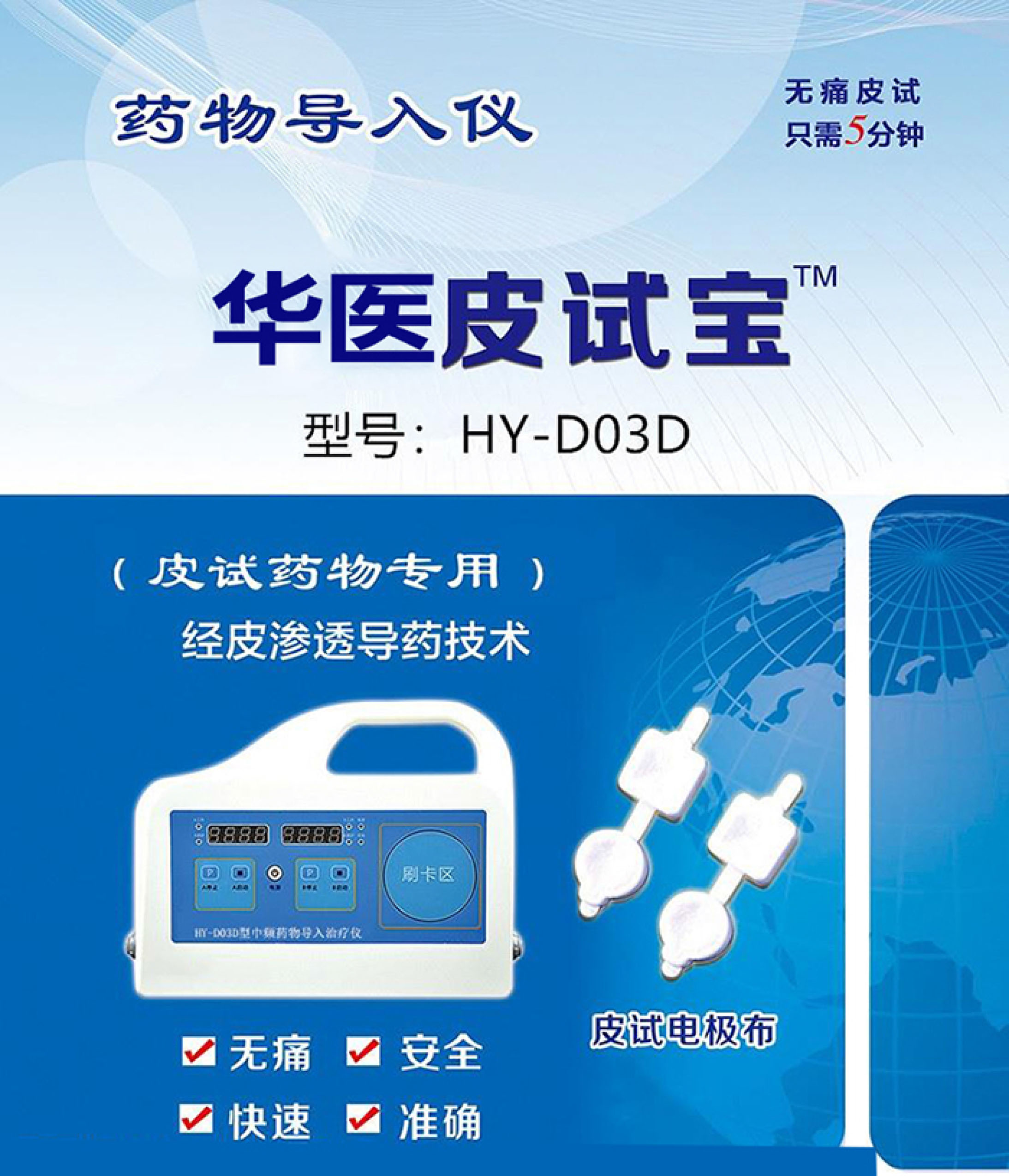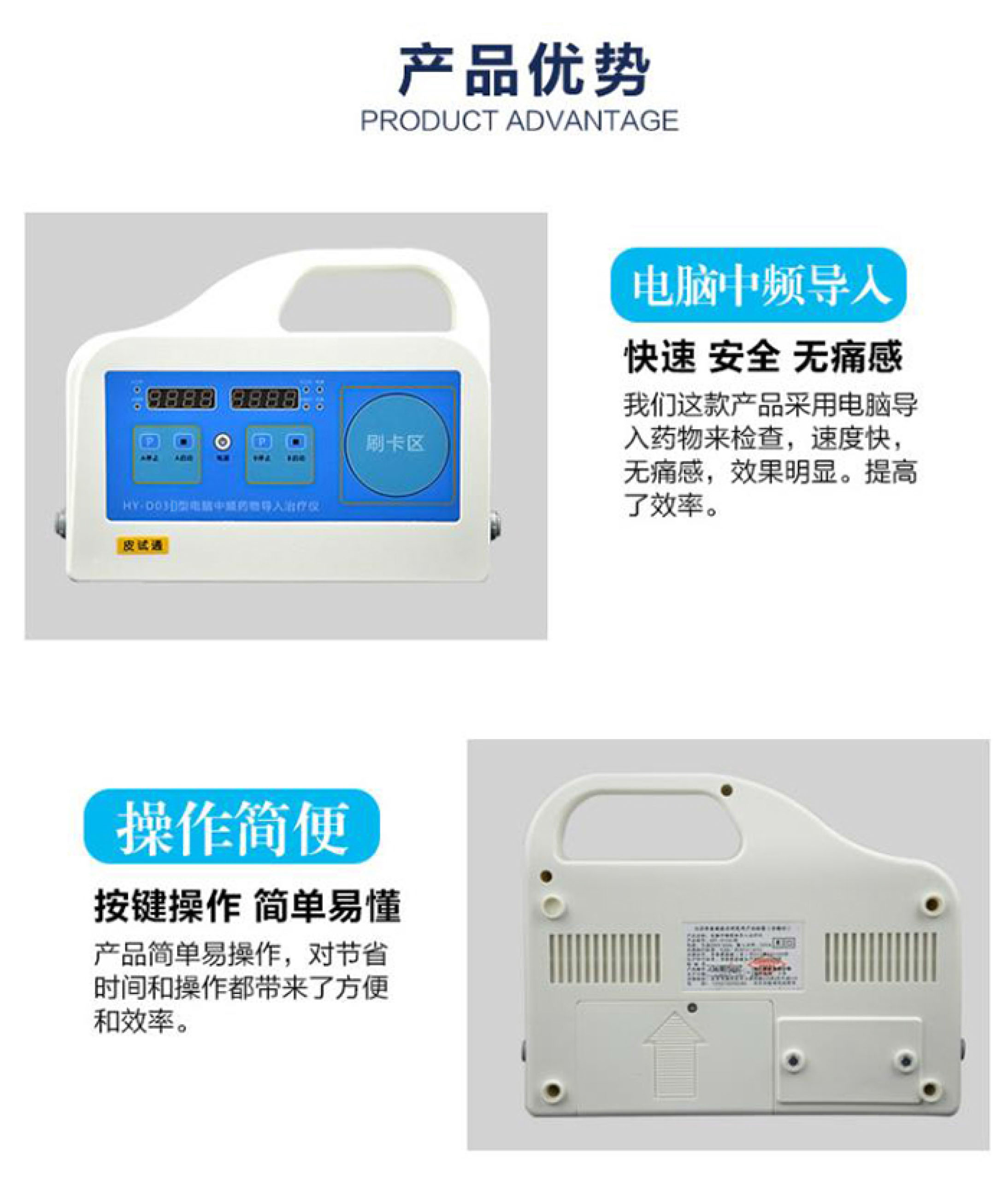 HY-D03D型中频药物导入治疗仪(皮试通)产品优势 采用先进的“定向透药"技术