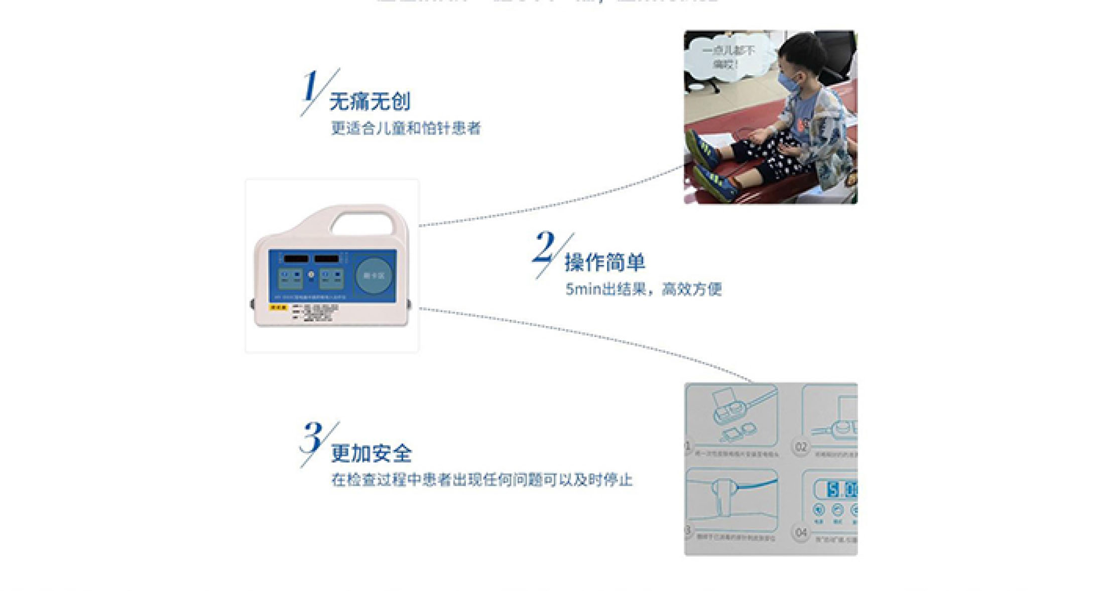 降,对药物离子产生定向的推动力,同时可削弱皮肤的刺痛感并有效地消除皮肤丘症的发生,避免对皮试结果的干扰,让皮试结果更准确。