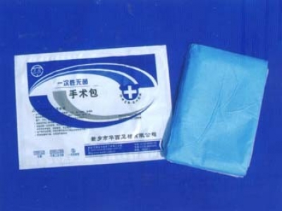 | 产品说明: | 一次性使用无菌手术包(简称手术包)说明书 产品名称:一次性使用无菌手术包 医疗器械生产许可证号: 医疗器械注册证编号: 规格型号:/ 产品结构及组成:本产品由基本配置一次性使用医用手术衣和选用配件:一次性使用聚乙烯检查手套、检查手套、一次性医用垫、一次性使用口罩、一次性使用医用帽、裤腿、一次性使用医用孔巾、一次性使用手术洞巾、一次性使用治疗巾、一次性医用中单、脱脂纱布块、一次性使用包布、医用纱布垫、医用薄膜手术巾、无菌塑柄手术刀、手术刀片、一次性使用镊子、托盘、方盘、塑料碗、弯盘、塑料杯、铅屏套、台套、机头罩组成。 使用范围:适用于医疗机构临床手术用 性能指标: