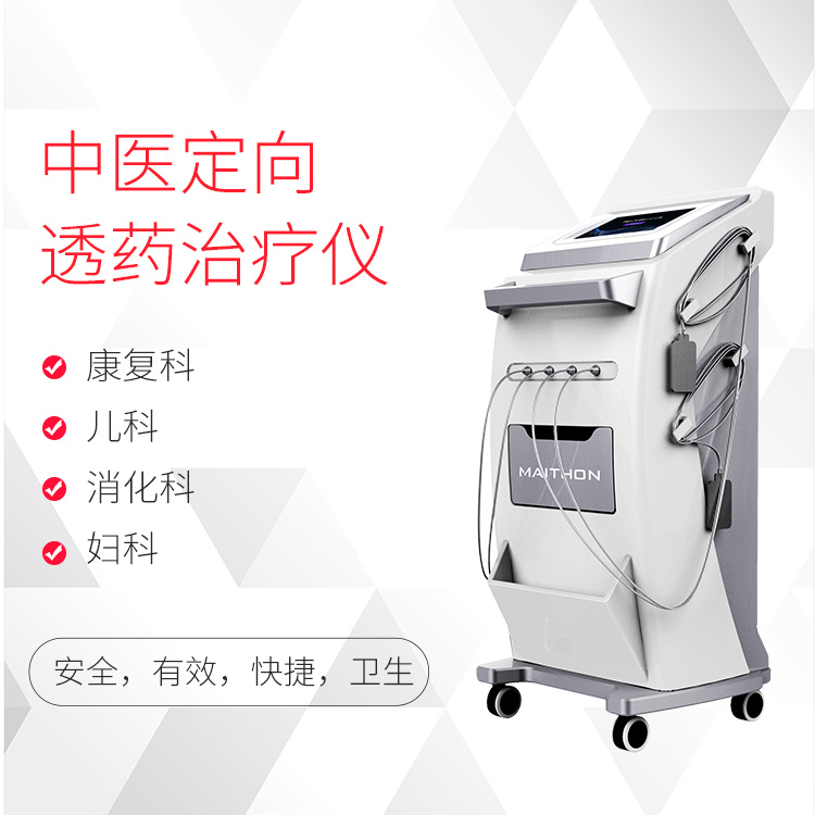 中药离子导入治疗仪---功能优势 1、提高生物利用率,减少总用药量:药物经皮肤直接进入体内,从而避免了药物在胃肠道被消化酶破坏、分解和经肝脏时的首过效应以及在体内运转过程中的代谢。并避免了个体差异。进入体内的药物有效成分被直接利用,其利用度可到60%以上,使药物总用量减少50%以上。 2、显效迅速:由于可直接在病变组织外迅速形成药物的聚集和侵润,并达到药物的有效组织浓度,直接、迅速的发挥其药物的治疗作用。 3、药效稳定、持久:由于皮肤和组织的药物代谢比较缓慢,使病变处的有效药物浓度可维持较长的一段时间。一般情况下可比口服药物作用时间延长2——3倍。 4、无血药浓度峰谷现象:药物进入人体内后入血量缓慢而稳定,不会产生类似于口服或静脉滴注药物时所产生的血药浓度峰谷现象。也就避免了因血药浓度峰值时产生的毒副作用。 5、提高疗效:药物在病变组织处维持较长时间、较高的有效浓度,提高药物对靶组织的作用。同时由于促进了药物由细胞外向细胞内转运,使需要在细胞内发挥作用的药物发挥最大药效。