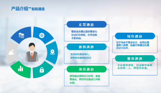 智能通道: 因为医院场景比较复杂,针对医院不同场景与漏费情况,和之风医疗设备智能控费系统设定5大通道,达到更好的控费效果。 1、正常通道 就是患者正常缴费后,可以正常做检验、检查,不缴费不能做检查。 2、体检通道 系统支持多种套餐设定,并且支持体检数据的导入。 3、复查通道 针对需要复查的患者,开启复查通道后,系统可自动检测患者复查信息,同时系统能自动识别复查患者是否同一人,同一项目的复查,如出现违规现象,及时控制,为医院堵漏增收。 4、急诊通道 针对急诊患者,可支持患者先检查后缴费。例:为急诊医生设定20个急诊名额,患者可以先做检查,如该患者做完检查后及时补交费用,系统会自动恢复医生的急诊名额为20个。如未及时补交费用,系统会产生一个欠费信息,并且该医生急诊名额为19个,控费系统收集信息,传输至手机app端,需要管理者审核恢复急诊名额。 5、特殊通道 如遇到特殊不缴费患者,可以通过后台app权限放号做检查。