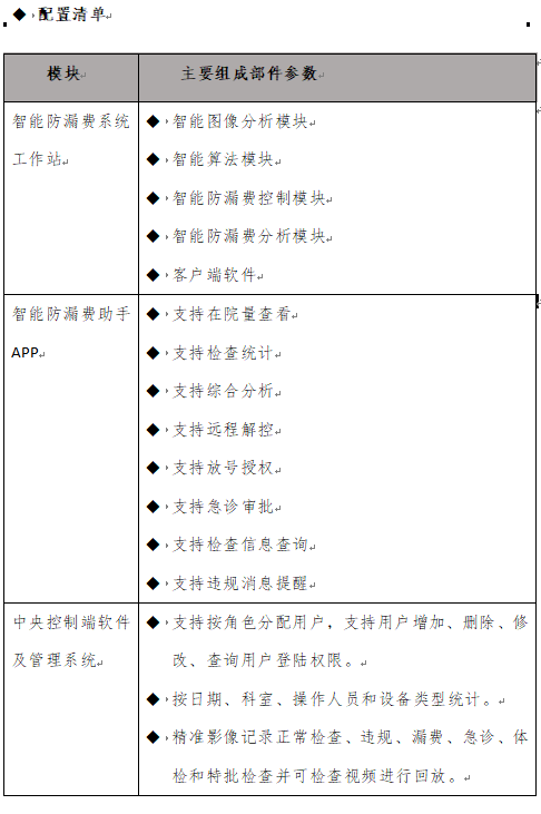 1. 影响诊疗效率,增加操作步骤: 痛点:系统增加了操作环节(如刷卡确认、人脸识别验证),尤其在就诊高峰时段,可能成为新的流程瓶颈,导致患者等待时间延长,医护人员抱怨增多。 解决方案: 如果是采用我们智能版防漏费系统,可以解决以上这个问题,不需要改变医生原来的工作流程,并且可以一键获取患者信息,也不会存在导致患者等待时间过久。但是传感器防漏费控制方案仍然需要多操作两个步骤或者四个步骤。 2. 特殊场景的灵活性不足: 痛点:医疗场景复杂,存在大量例外情况。 具体表现: 急诊急救:生命垂危的患者需要争分夺秒,必须先缴费再检查的流程不现实。 绿色通道:对于“三无”病人或政策减免人员,系统如何快速放行? 解决方案: 我们厂家采取放号可以满足急诊患者先看病后缴费的流程,避免给急诊患者带来不方便,患者补缴费用之后,系统就会自动产生冲账处理。 患者中途加项:例如在做超声时,医生发现新问题需要增加检查部位,需要重新缴费并再次授权,流程繁琐。 解决方案: 患者如果遇到紧急情况时,需要增加部位,那么我们解决方案就是两种方案,由医技科室医生走急诊通道,事后患者采取补缴冲账的方式,或者在系统里面设置检中加项模块来解决这个问题。 3. 医患关系紧张: 痛点:当设备因系统判断缴费问题而突然停止工作时,需要医护人员向患者解释,容易引发患者的不满和误解,认为医院“只认钱,不认病”,损害医院声誉。 ü 管理和成本层面 1. “治标不治本”的管理困境: 痛点:系统本质上是一种“技术监督”,它阻止了违规行为,但可能没有解决产生违规行为的根本原因,可能导致医护人员产生抵触情绪,寻找新的系统漏洞,或者将矛盾转移到其他方面,无法从根本上构建医院的廉洁文化。 解决方案: 医院上咱们这个系统,首先科室肯定不满意,这是因为一定程度上损害了某些人的利益,需要院方领导拿出一套解决方案,并从制度上完善,这样才能达到治本的目的,才能为医院堵漏增收。 2. 数据安全与隐私风险: 痛点:系统监控和采集了大量的患者信息、操作日志甚至视频画面,这些数据的安全性和隐私保护至关重要。 解决方案: 首先我们厂家采取的不是摄像头,而是识别患者的轮廓比例,所以不会存在涉及患者的隐私风险问题。至于患者信息及操作日志信息数据安全,我们可以在院方设置前置服务器,这样更能保证我们院方数据安全。u 重点关注的设备科室设备兼容性:系统支持医院需要管理的所有类型的医疗设备(超声、CT、MRI、检验设备、部分中医设备等,支持定制化)。 (二)配置清单:u 配置清单模块主要组成部件参数智能防漏费系统工作站