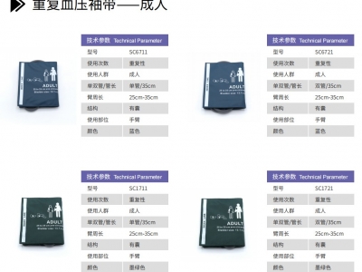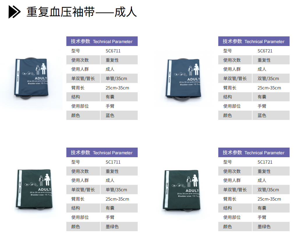 产品名称:监护仪配件兼容通用蓝色PU革成人单/双管有囊重复性血压袖带25-35cm