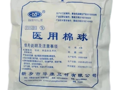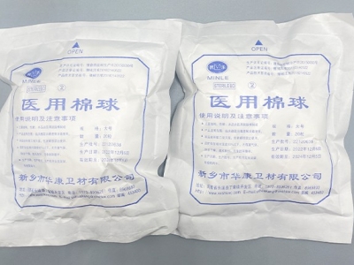 医用棉球使用说明书 【产品名称】:医用棉球 【产品规格】:20g和20g以下:特小号;30g:小号;40g、50g、60g、70g:中号;80g、90g、100g、110g、120g、130g:大号;140g和140g以上:特 大 号(单 位g /百 粒)。 【产品结构组成】:本产品由医用脱脂棉加工制成。 【产品贮存】:贮存在干燥通风、无腐蚀性气体处。 【适用范围】:使用酒精、碘酊或碘伏为消毒剂,用于注射、输液前对皮肤进行消毒使用。 【注意事项】: 1、本品为一次性使用,用后销毁; 2、包装破损禁止使用; 3、生产日期、批号、有效期见合格证。 【生产单位】:新乡市华康卫材有限公司 【生产地址】:河南省长垣县丁栾镇开发区 【注册地址】:河南省长垣县丁栾镇开发区 【售后服务单位】:新乡市华康卫材有限公司 【联系电话】:0373-8976668 【传 真】:0373-8976668 【移动电话】:16668299201